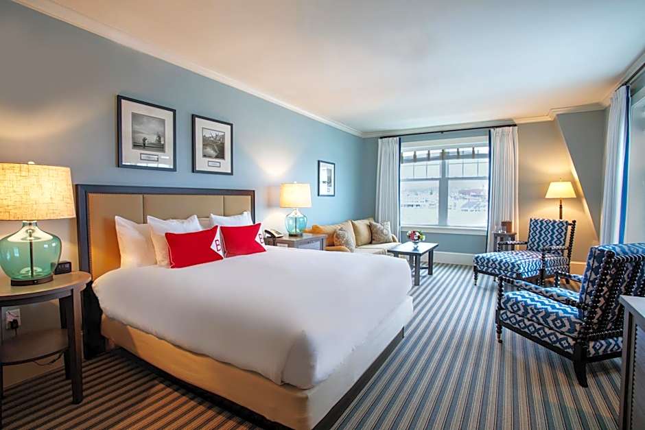This room offers views of the historic city of Gloucester and partial views of the inner harbor. Linens and non-allergenic pillows, cotton bath towels, marble accented bathrooms and L’Occitane bath products are offered.